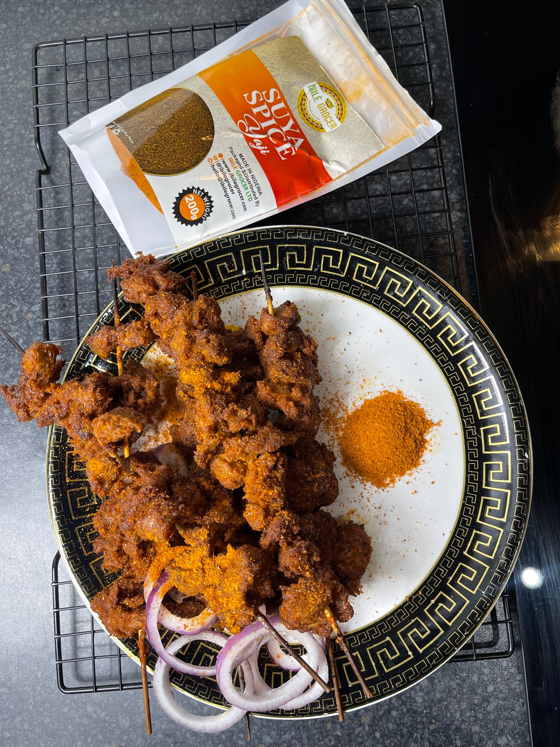 Authentic suya seasoning is made with Kulikuli (a roasted peanut snack), cayenne pepper and some other spices. It's nutty, aromatic and perfect on beef, chicken, fish, lamb and some vegetables.